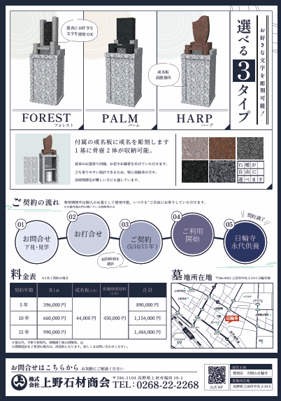 5年・10年・15年のお好きな期間をお選びいただき、契約期間中は個人のお墓としてお使いいただける「期限付きのお墓」です。